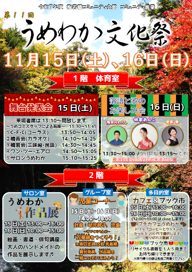『うめわか文化祭』開催のお知らせ。