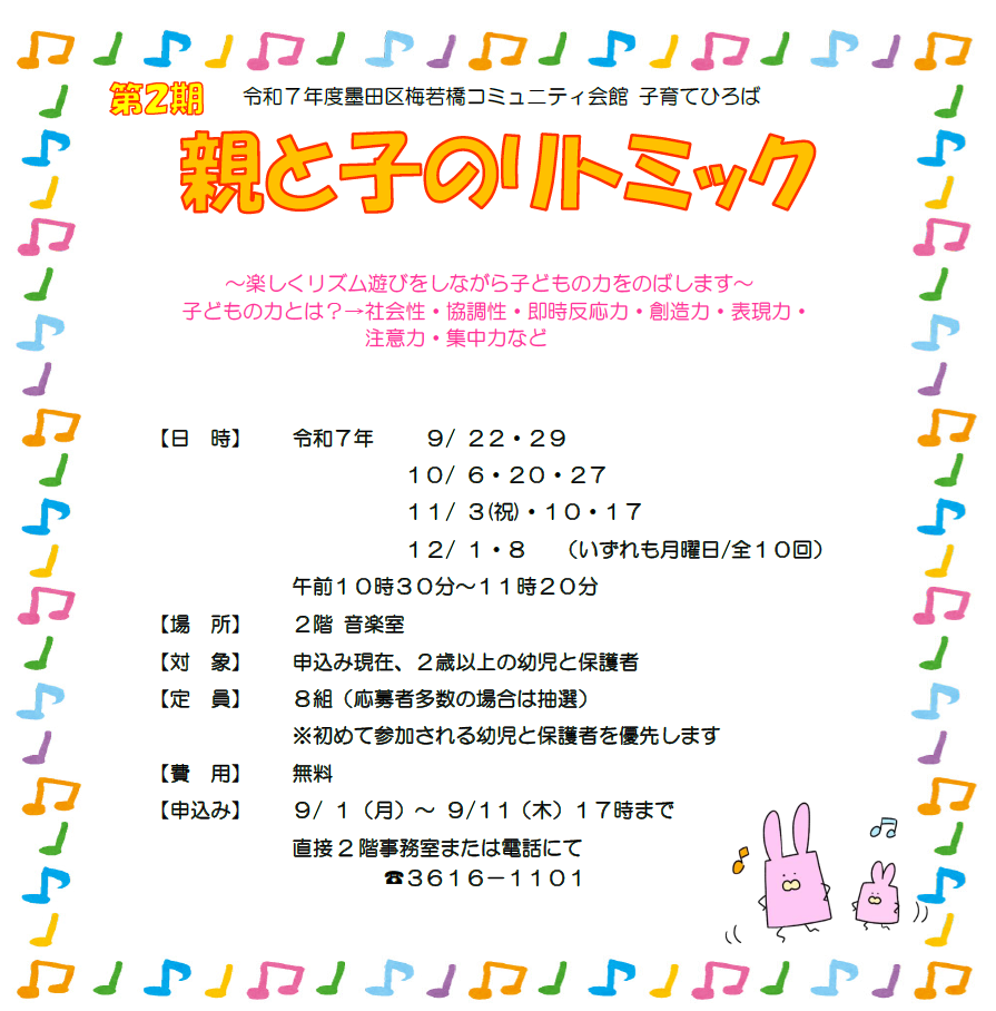 令和7年度「親と子のリトミック 第2期」募集のお知らせ